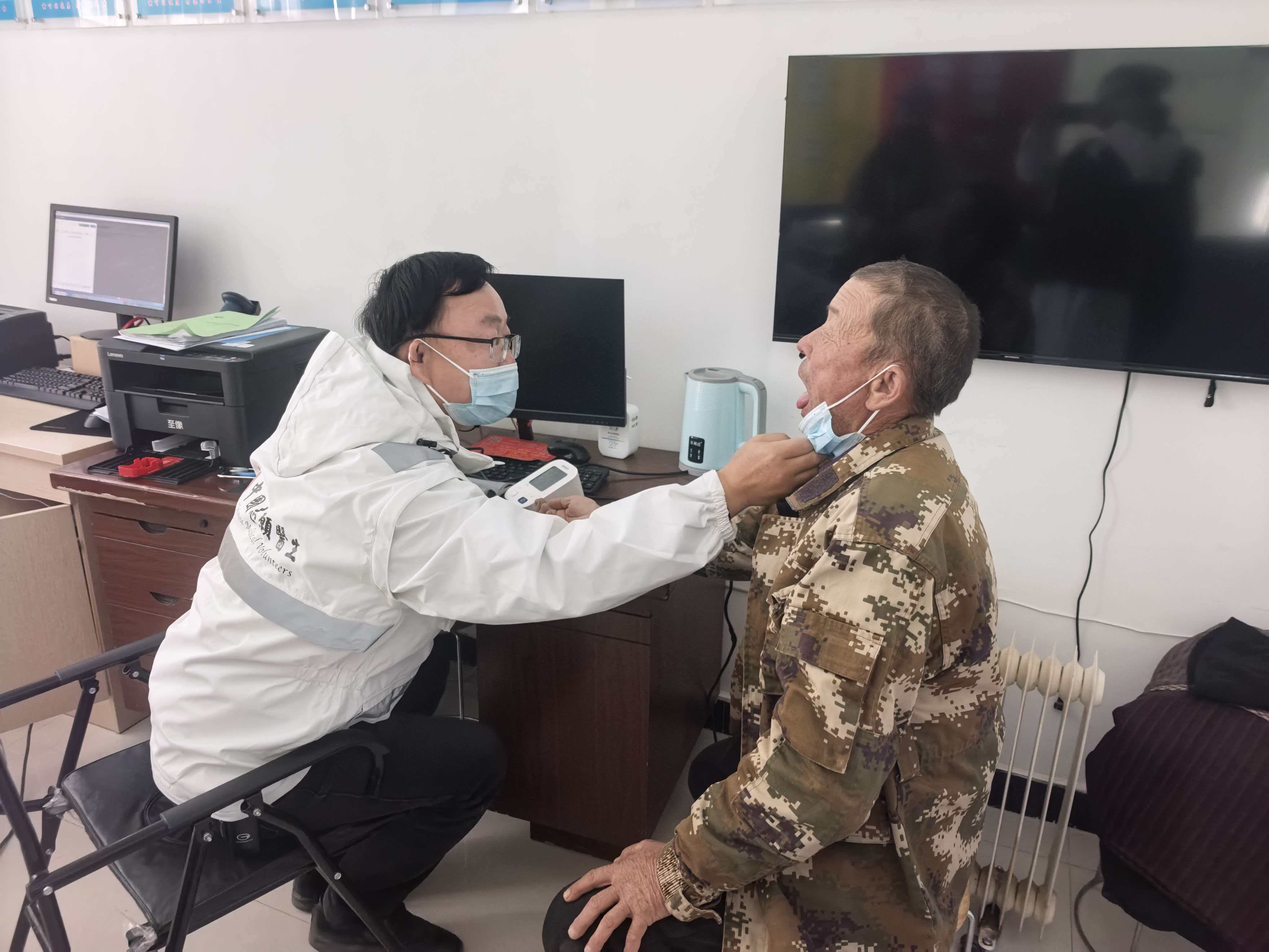 小小的康复健康小屋很快暖了起来。志愿医生于医生脱下外套,挂上听诊器,一天的巡诊就此开始。首先义诊的是一对老夫妻,爷爷膝盖疼了多年,奶奶近来总觉胸闷;接着是带着孩子的母亲,孩子咳得脸颊通红;还有两位骑马赶来的牧民,一个肩膀使不上力,另一个旧伤遇寒便腿脚发麻……