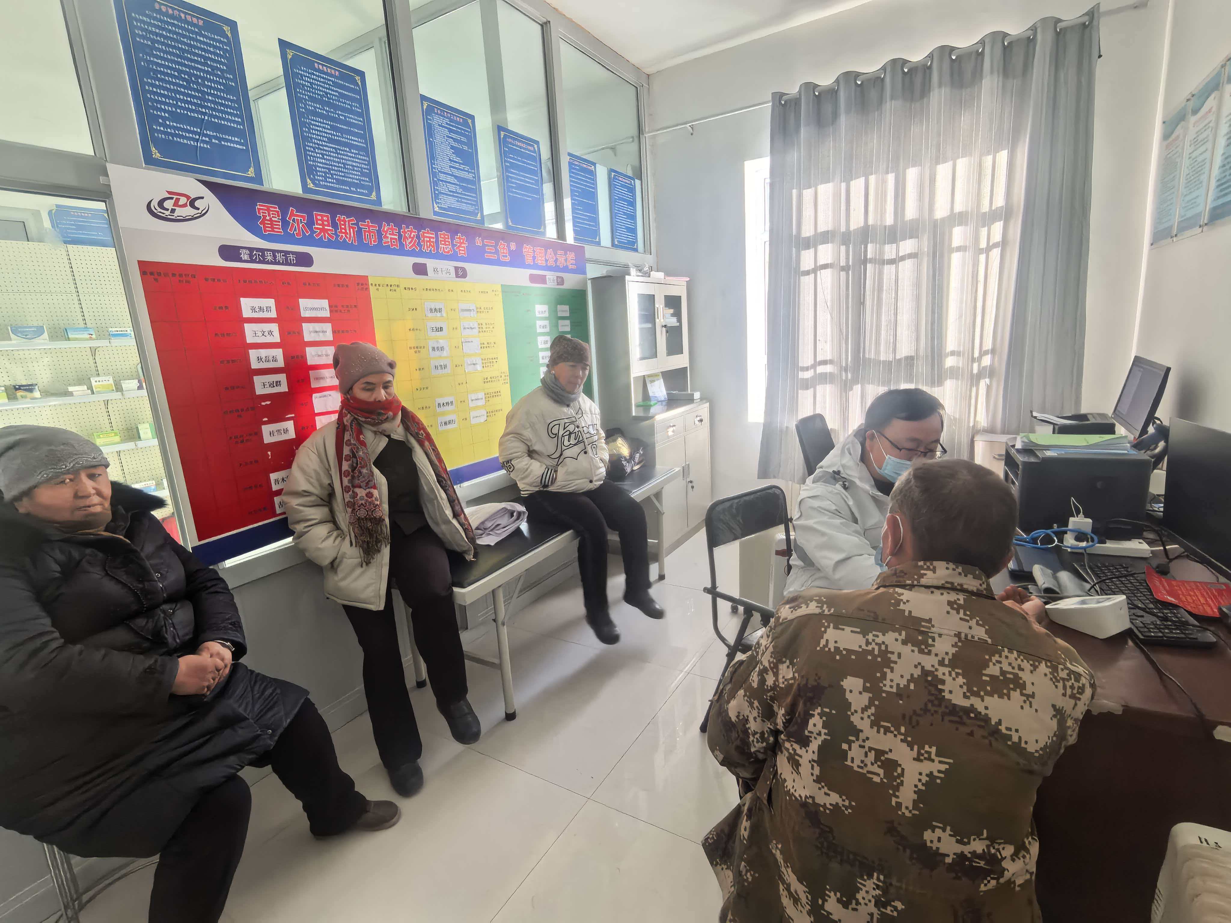 于医生开始耐心接诊。他用不太熟练的哈萨克语夹杂着手势询问病情,又转身和一旁的村医古丽讨论治疗方案。听诊、触诊、测量血压,小小的诊室里流转着温和的对话与关切的眼神。那天上午,他总共接诊了八位牧民——两人重感冒,两人腿疼,三人肩膀不适,一人胸口闷痛。每个数字背后,都是一张被风雪刻满痕迹的脸,一个在严寒中与身体疼痛默默周旋的家庭。